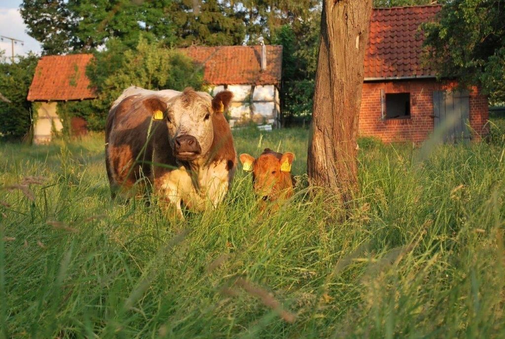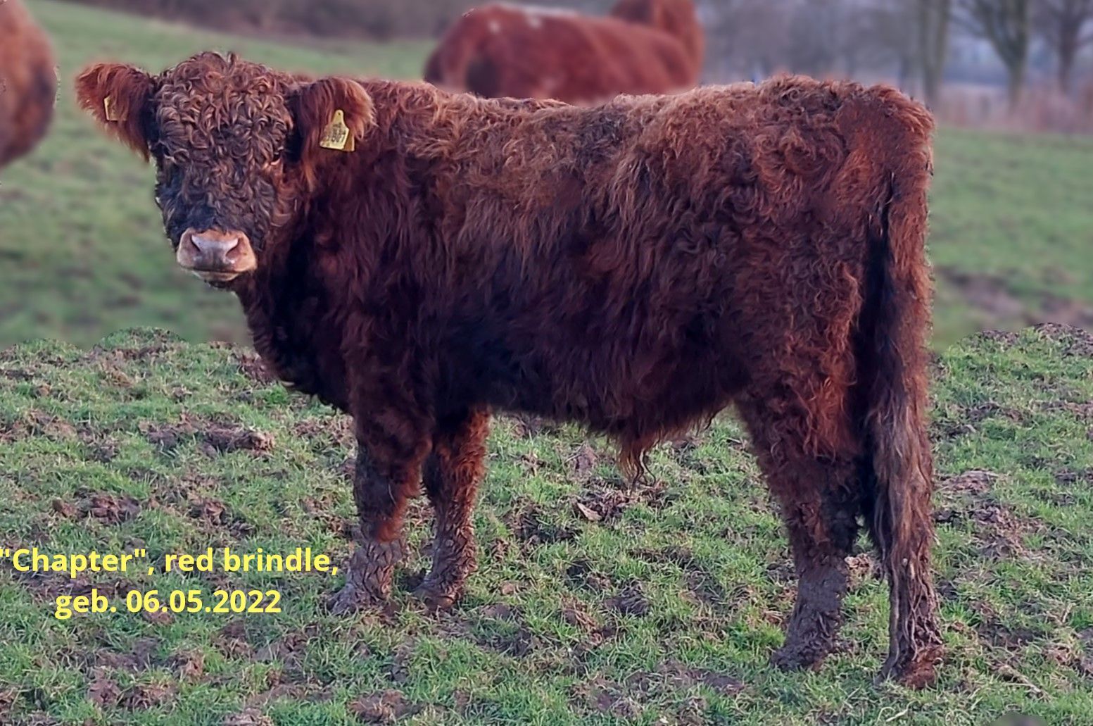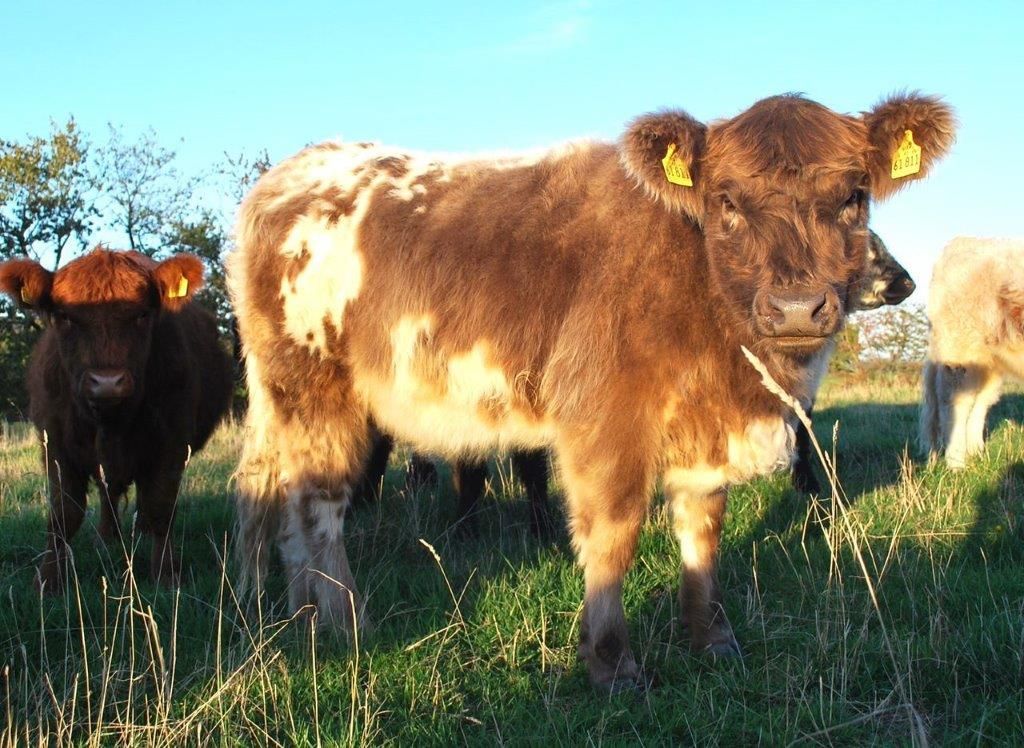 Unser Zuchtziel sind leichtkalbige Kühe im mittleren Rahmen mit guten Muttereigenschaften, die bei Ernährung nur durch Grundfutter ganzjährig draußen gehalten werden können. Mindestens ebenso wichtig sind uns ruhige Charaktere, die ein leichtes stressfreies Handling der Tiere im Sinne von low stress stockmanship ermöglichen. Jungbullen werden als zukünftige Zuchtbullen abgegeben oder gehen in die Direktvermarktung.