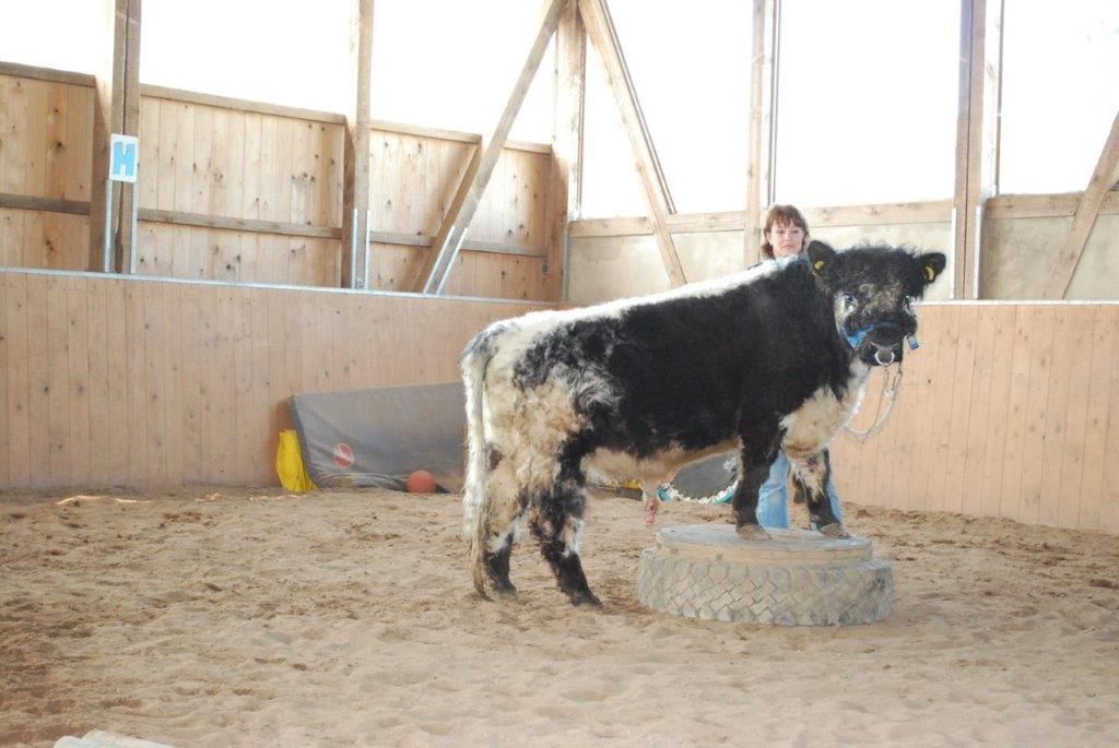 Wir züchten seit mehr als 30 Jahren Galloways und legen sehr großen Wert darauf, dass unsere Tiere leicht zu handhaben sind. Durch frühzeitigen Kontakt wird der respektvolle Bezug auf den Menschen antrainiert. Ruhe in Gestik und Stimme haben Priorität. Dabei macht Übung bekanntlich den Meister: Verladetraining, Kennenlernen von Hunden und Pferden, Fellpflege mit Striegel und Bürste, Strick und / oder Halftergewöhnung etc.
